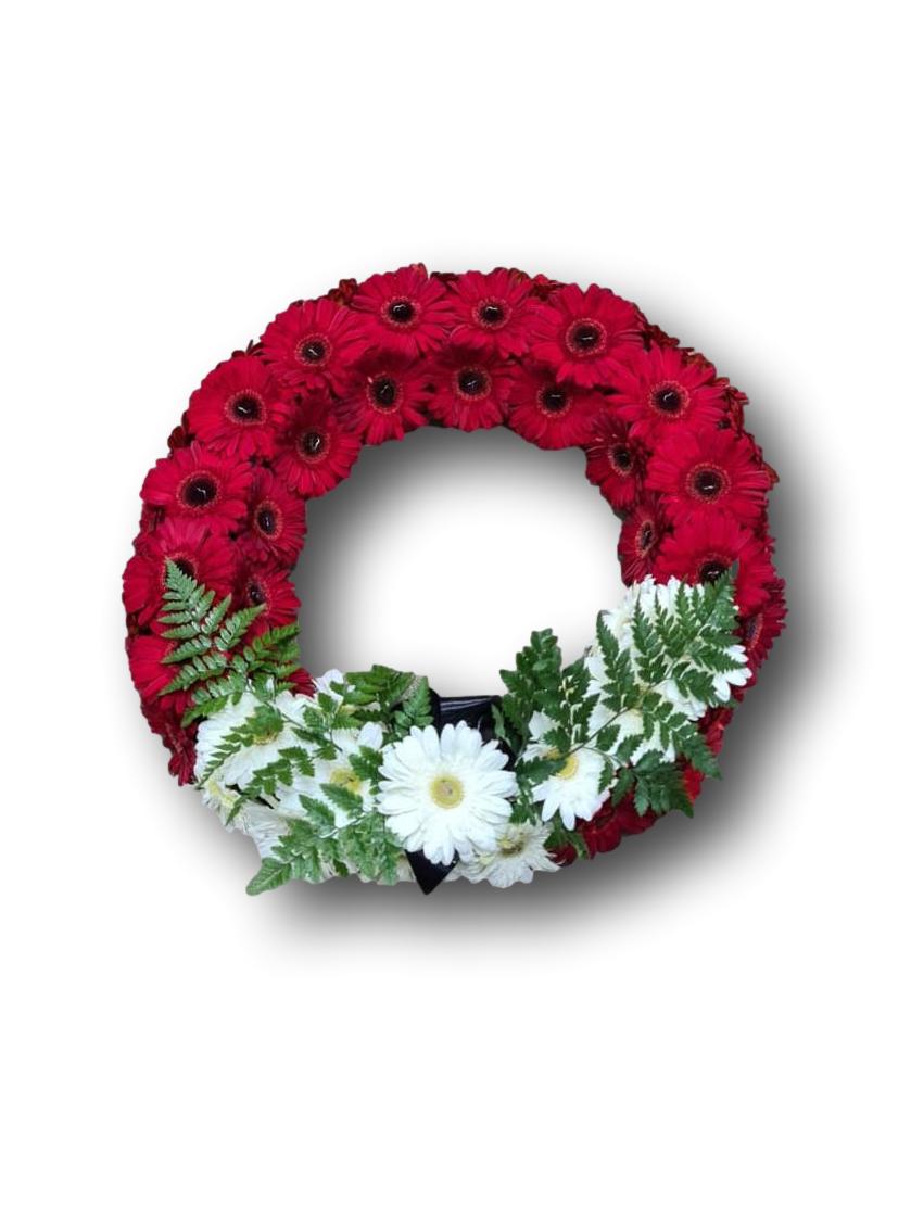 גלגל אבל לבן אדום מיוחד זר מסמל כבוד זיכרון והנצחה נוהגים להניח אותו בלוויות אזכרות או ליד קברים