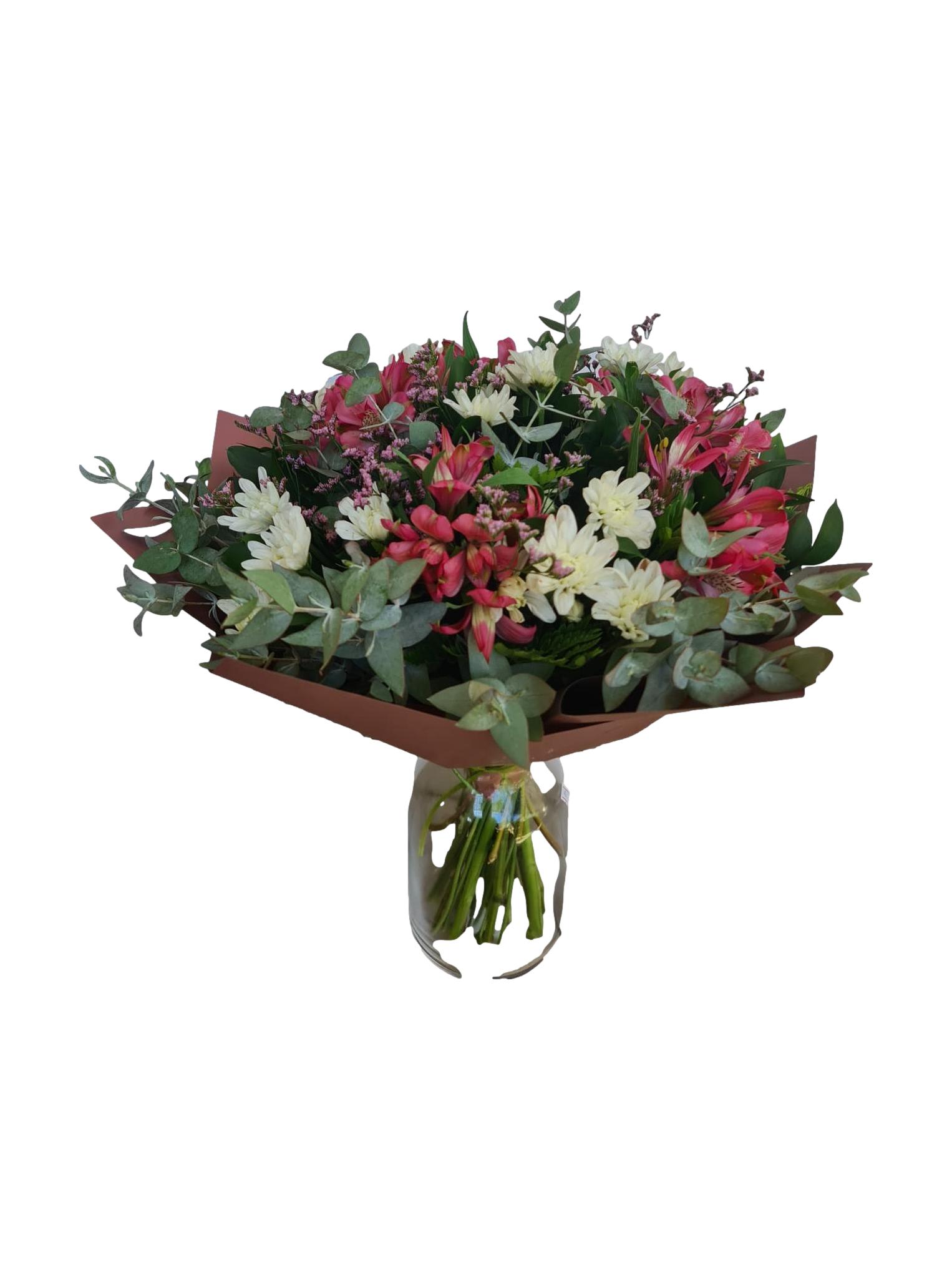 זר מורכב מחרציות , ואלסטרומריה עם ירק מיוחד מתאים לכל אירוע ( צבע הפרחים לפי ה מלאי בחנות )