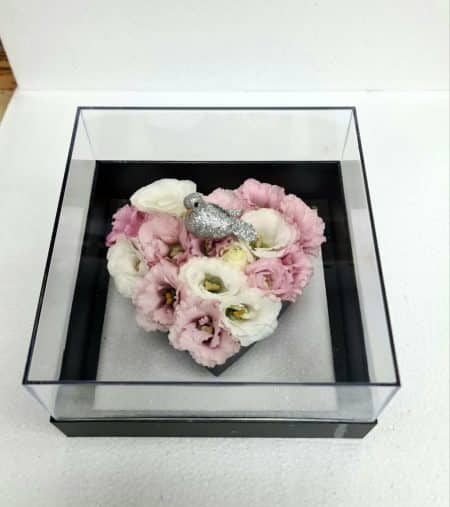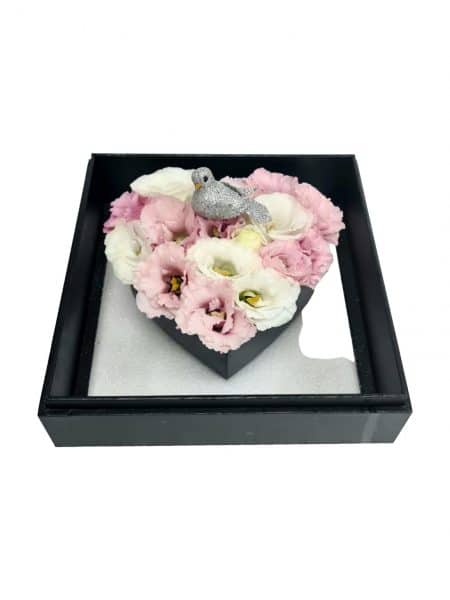 מארז אישי ,קופסא מהודרת פרחים בצורת לב עם ציפור כסוף