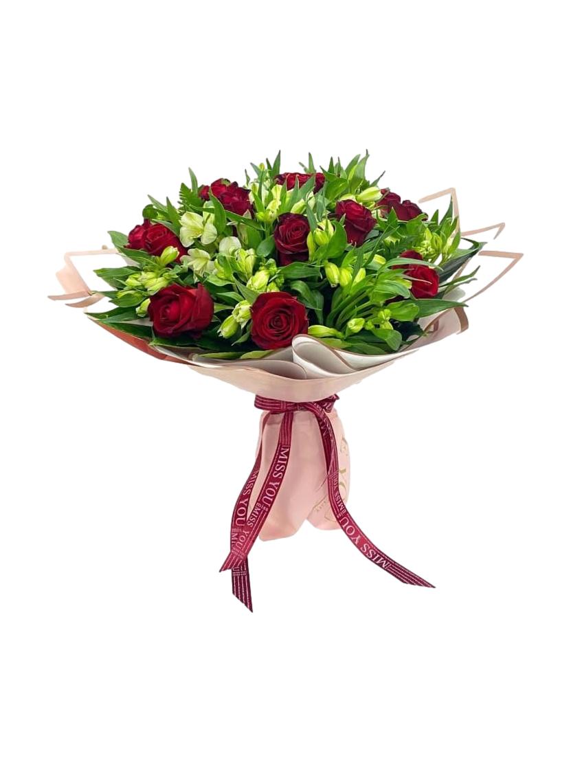 זר מיוחד מורכב מ ורדים ואלסטרומריה ( צבע הפרחים לפי המלאי בחנות )