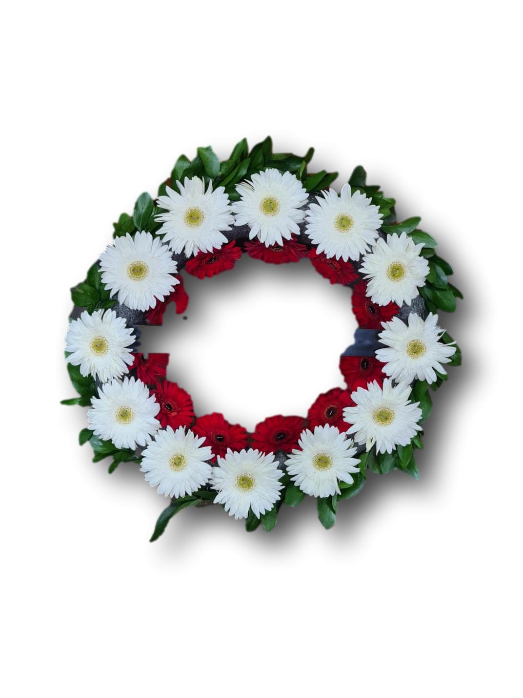 גלגל אבל לבן אדום מיוחד זר מסמל כבוד זיכרון והנצחה נוהגים להניח אותו בלוויות אזכרות או ליד קברים