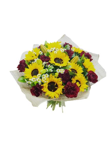 חמניות: פרחים צהובים, המעניקים לזר נפח ומראה “שדה”.