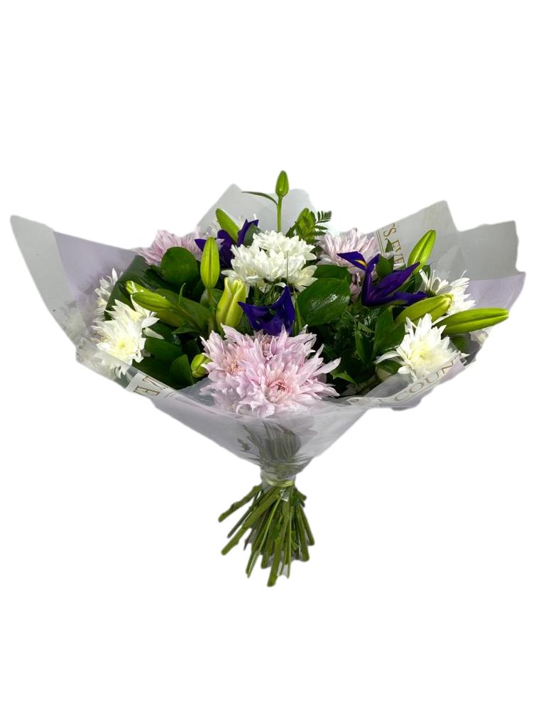 מורכב מ – חרציות ,ליליות, ליינטוס / או אלסטרומריה ( סוגי הפרחים וצבע הפרחים לפי המלאי בחנות )