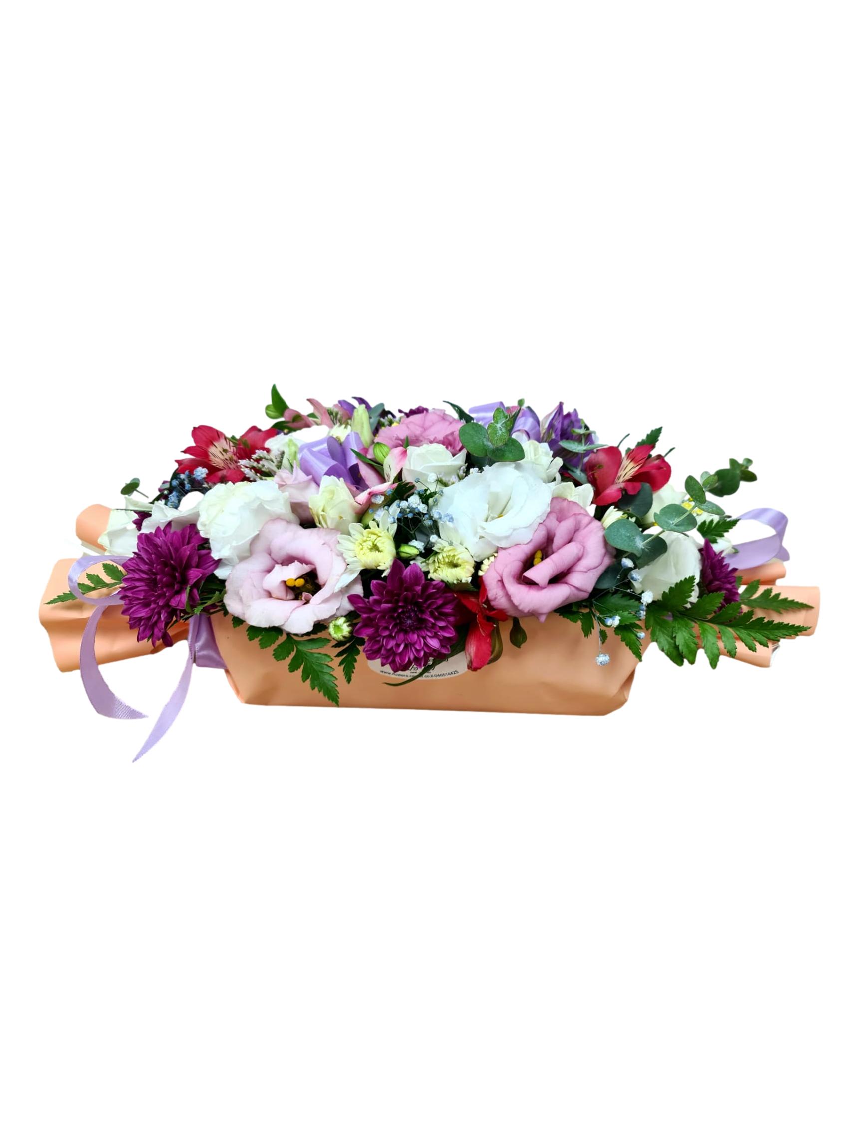 זהו זר פרחים חגיגי, צבעוני ומרענן, המעוצב בסגנון כפרי ועשיר. הזר משלב בתוכו מגוון טקסטורות וצבעים המעניקים תחושה של פריחה אביבית במיטבה.