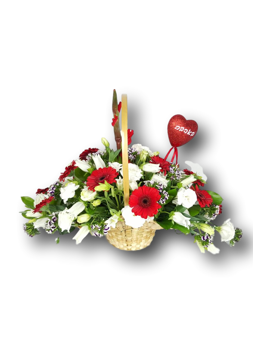 סלסלה לבן אדום מפרחים עונה , צבע וסוגי הפרחים לפי עונה ומלאי בחנות