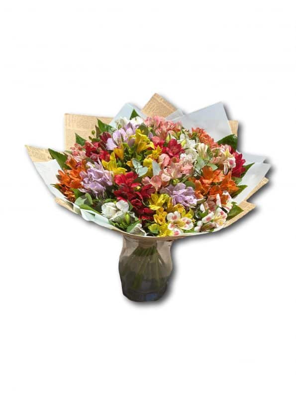 זר אסטרומריה בשלל צבעים בעטיפה מהודרת { צבעים לפי המלאי )