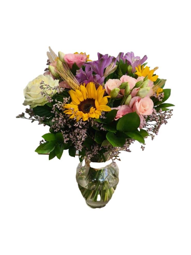 זר חמניות צהובות בשילוב ליליות וציפורן . טיפים כיצד לגרום לפרחים להחזיק יותר זמן