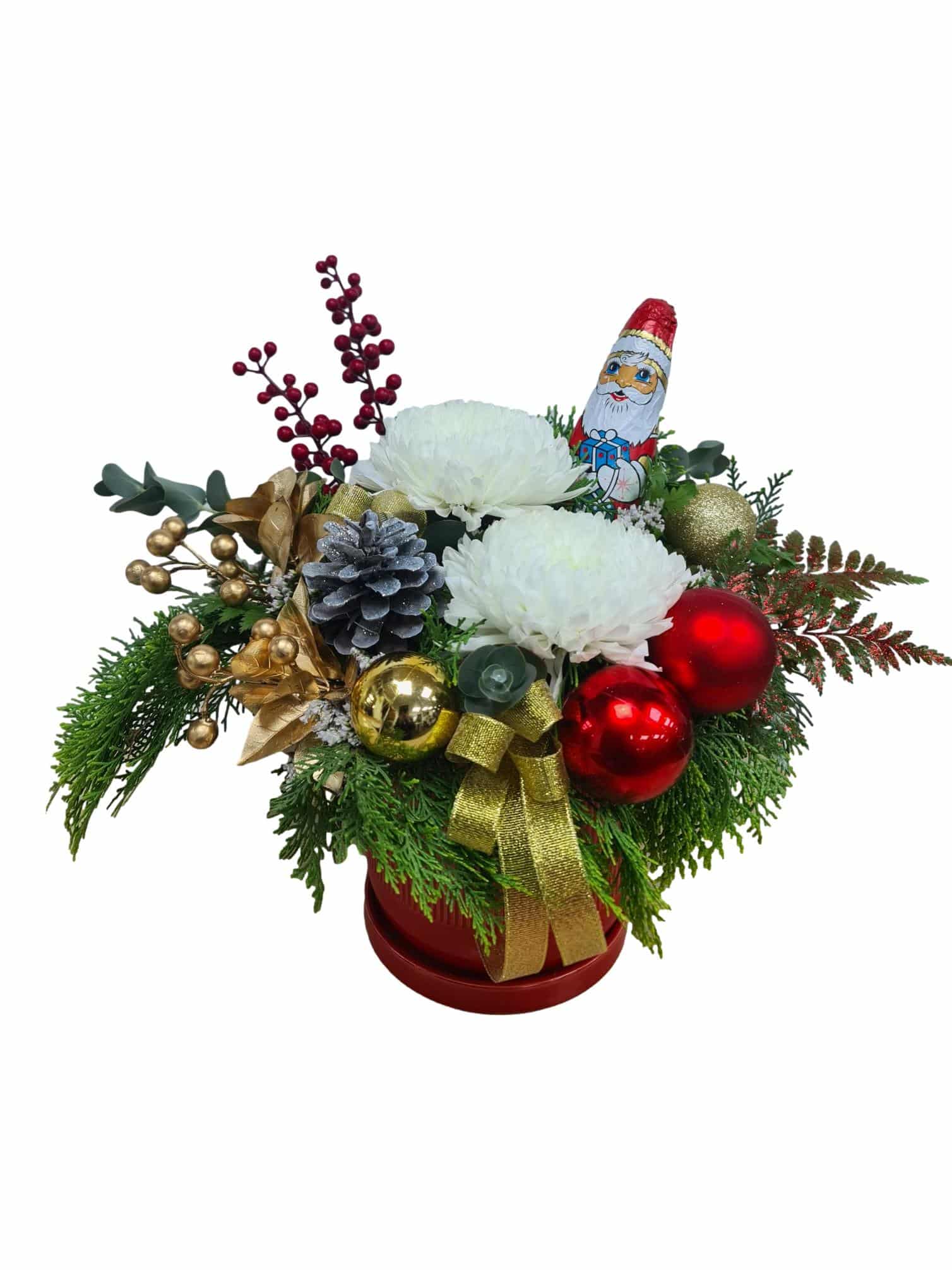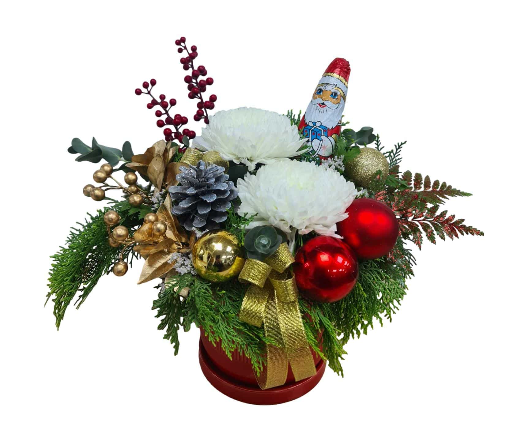 חגיגה עם סנטה הוא סידור בכלי קרמיקה חגיגי ,שילוב של פרחים עץ אשוח קישוטים מיוחדים לכריסטמס עם שוקולד סנטה